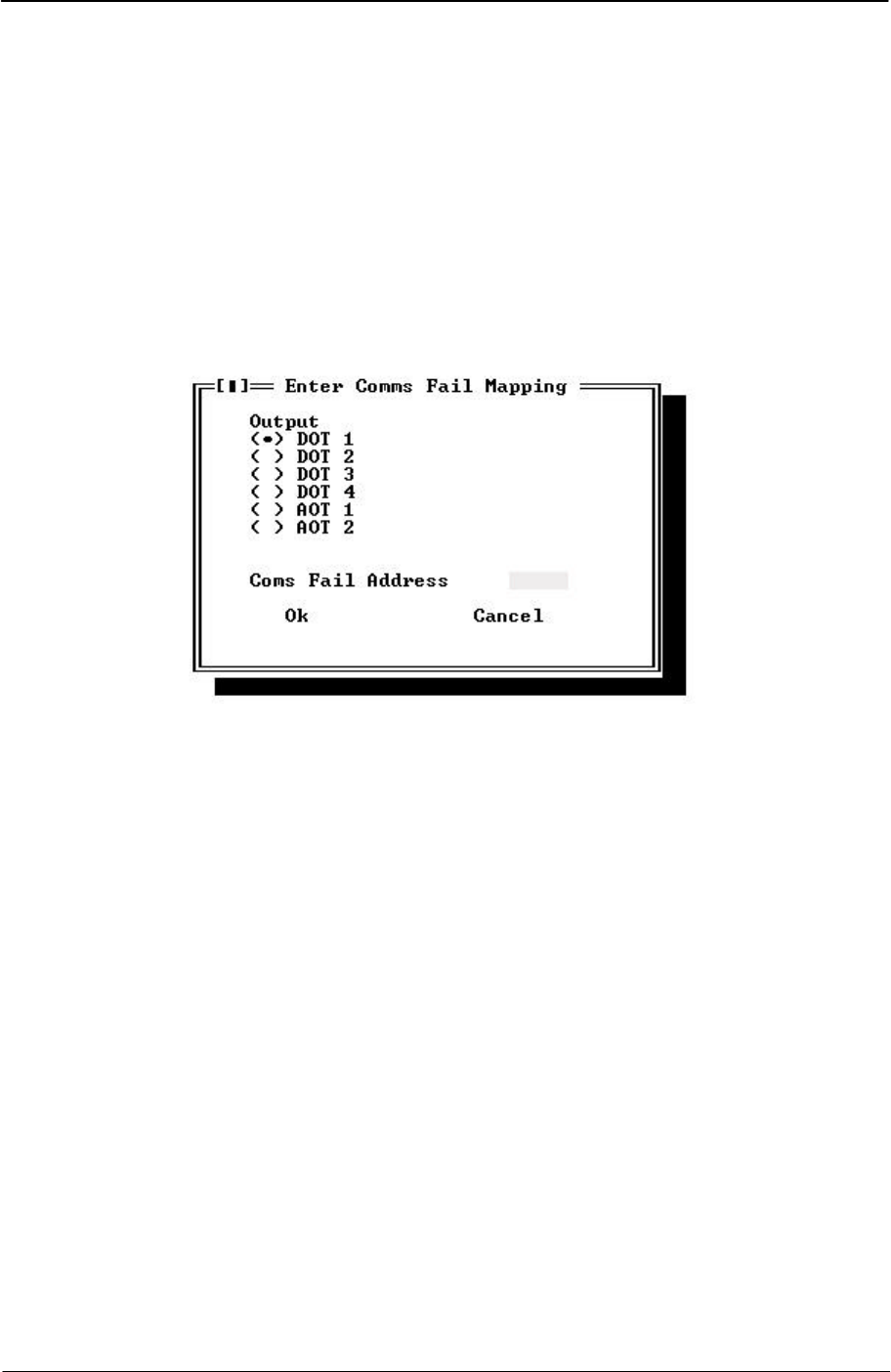 • Comms fail reset times have been selected for the analogue outputs (21 minutes) but not the