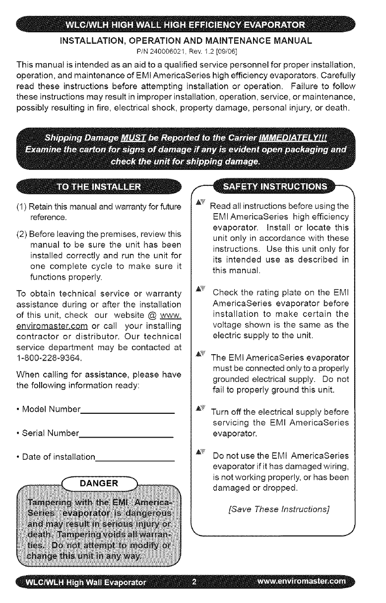 operation,andmaintenanceofEMIAmericaSerieshighefficiencyevaporators. Carefully