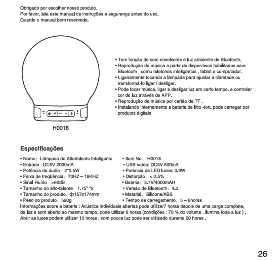 EMOI LIFESTYLE H0018 Smart Lamp Speaker User Manual H0018 USER