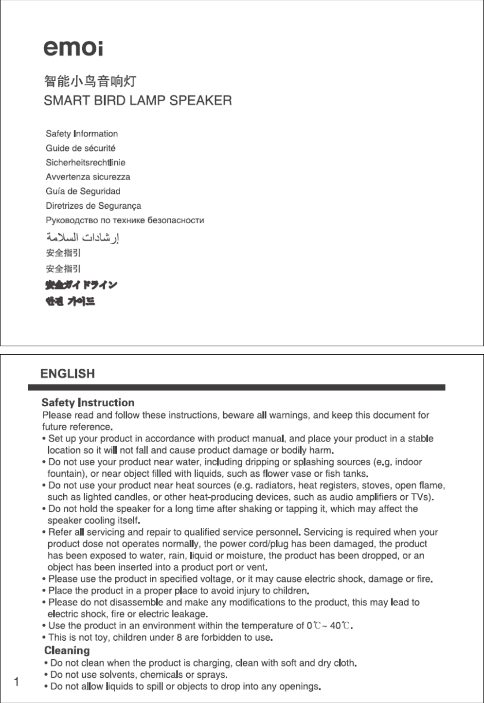 EMOI LIFESTYLE H0038 Smart Bird Lamp Speaker User Manual H0038 rev