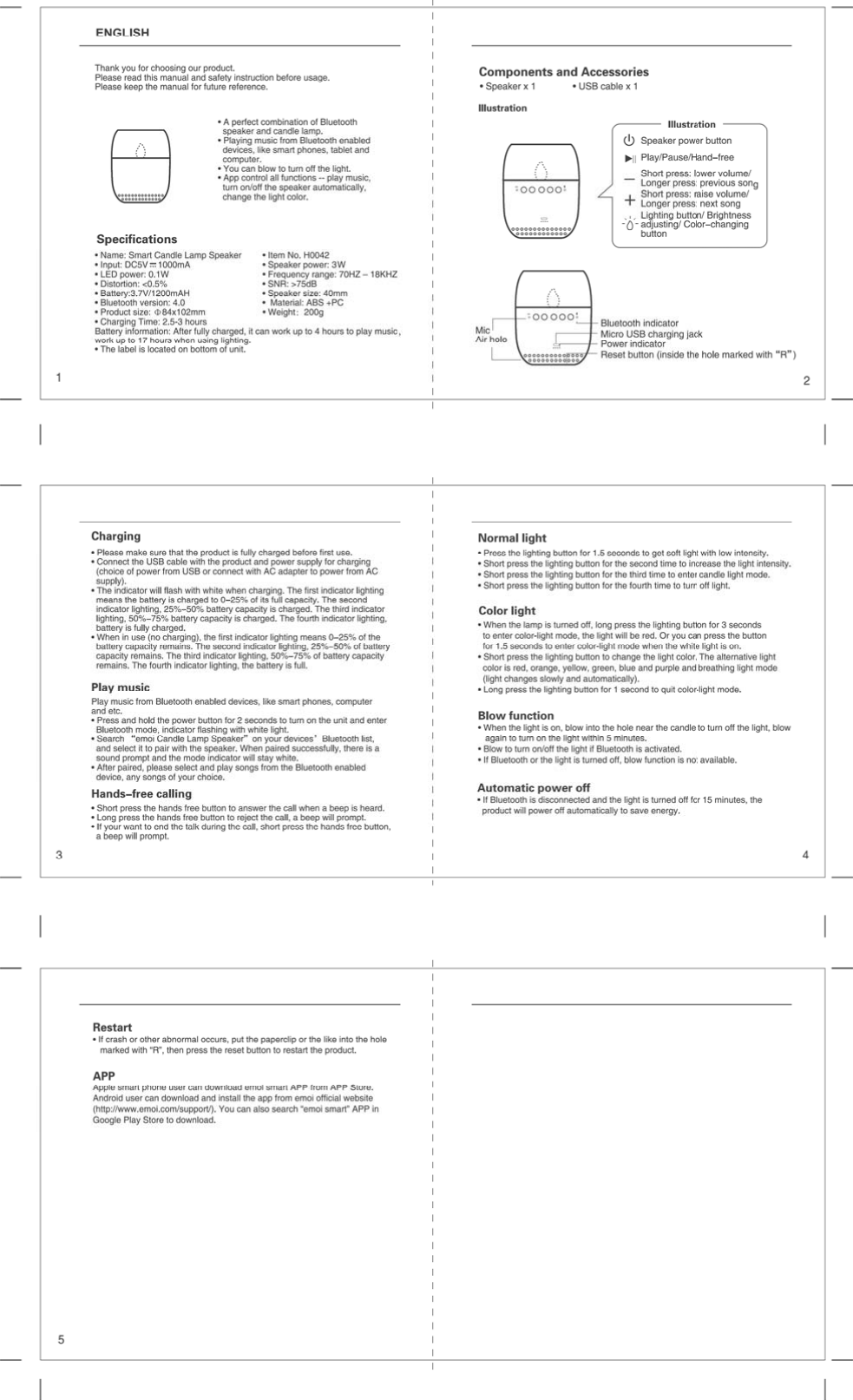EMOI LIFESTYLE H0042 Smart candle lamp speaker User Manual