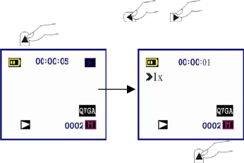 6. Up/Down: Select setting. Up botton can play video on preview mode.