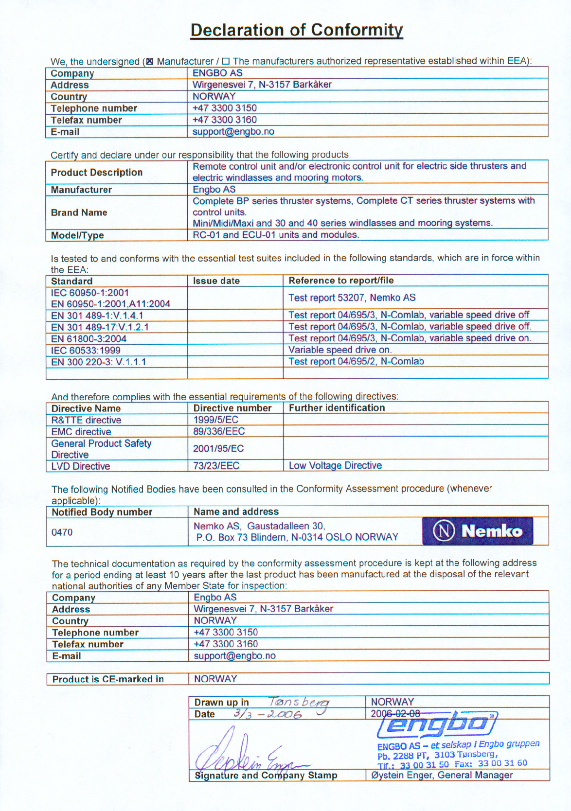 E-MAIL: support@engbo.no WEB: www.engbo.no TEL.: +47 33 00 31 50 FAX: +47 33 00 31 60