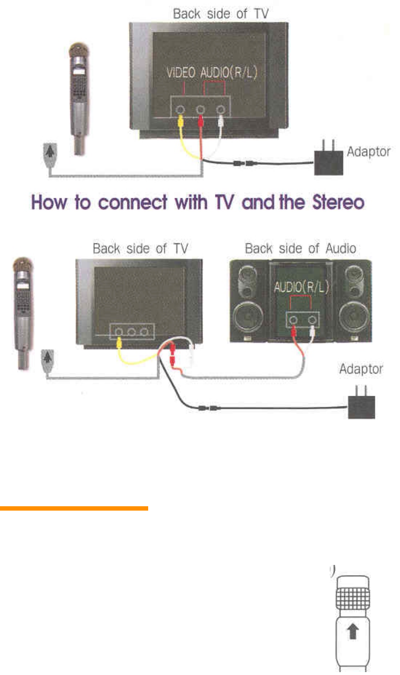 8. If there are only two holes for the external input in you TV (mono TV), put the yellow jack into the