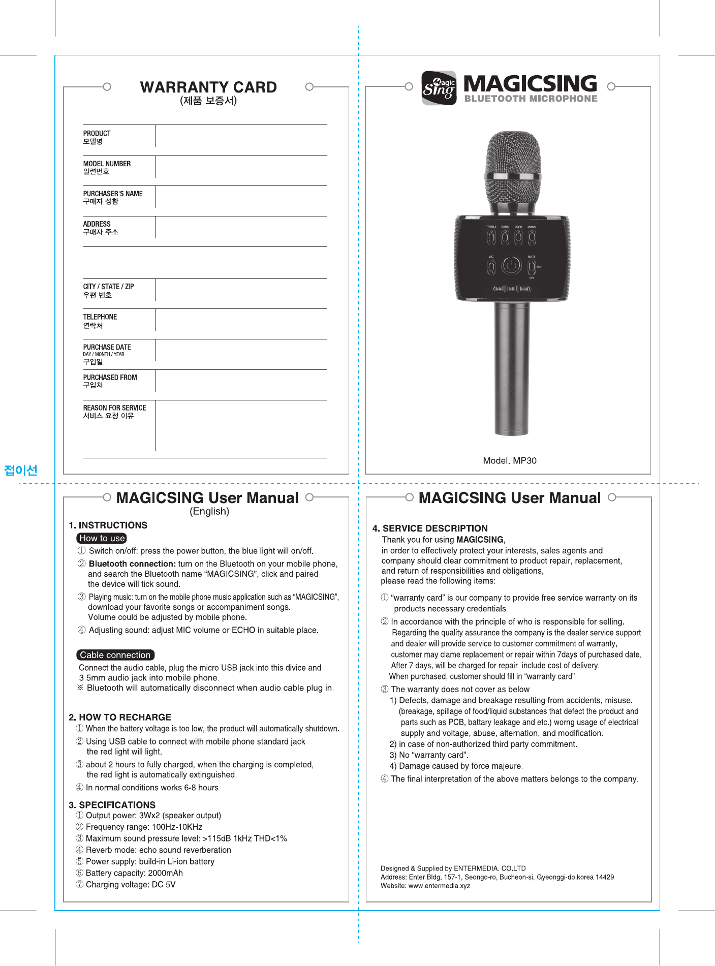 ENTERMEDIA CO., LTD. BLUETOOTH MICROPHONE MP30