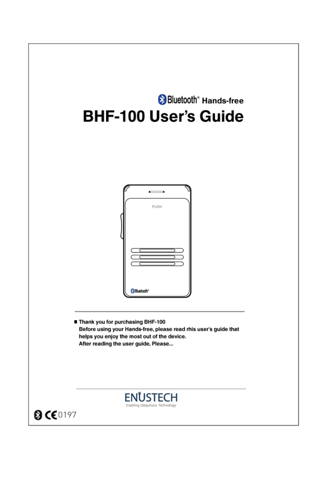 ENUSTECH EBHF100N0005 BLUETOOTH HANDSFREE CAR KIT User Manual