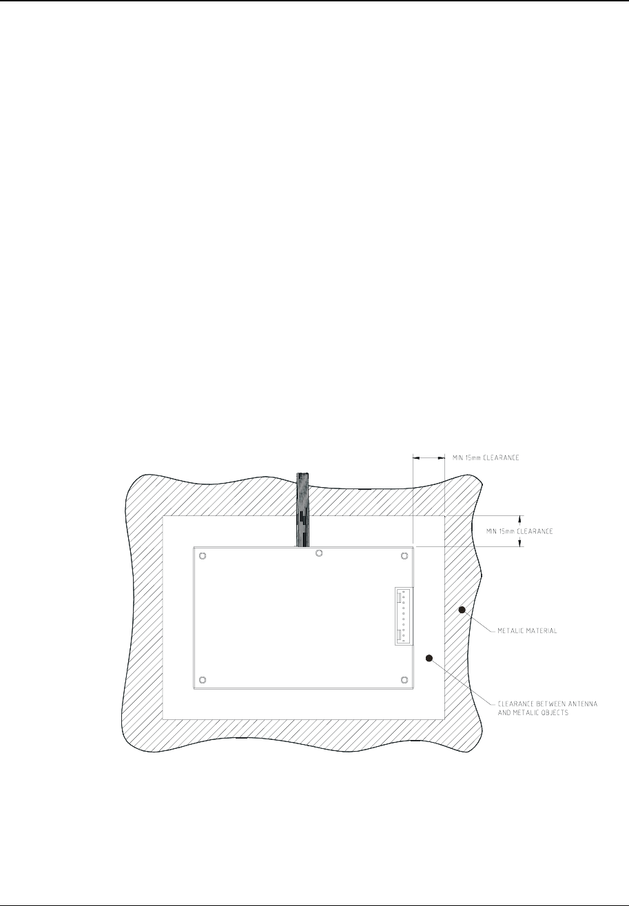 • Ensure that any metalwork and/or EMC coatings are at least 15 mm away from the sides