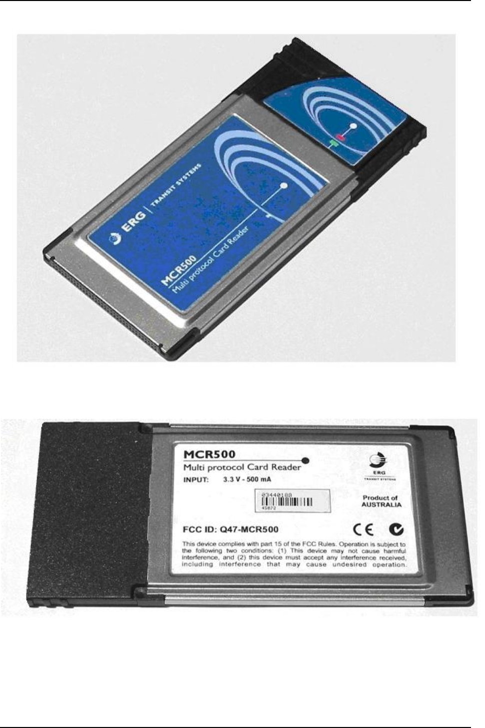 ERG Transit Systems MCR500 PC TYPE CARD READER User Manual users manual