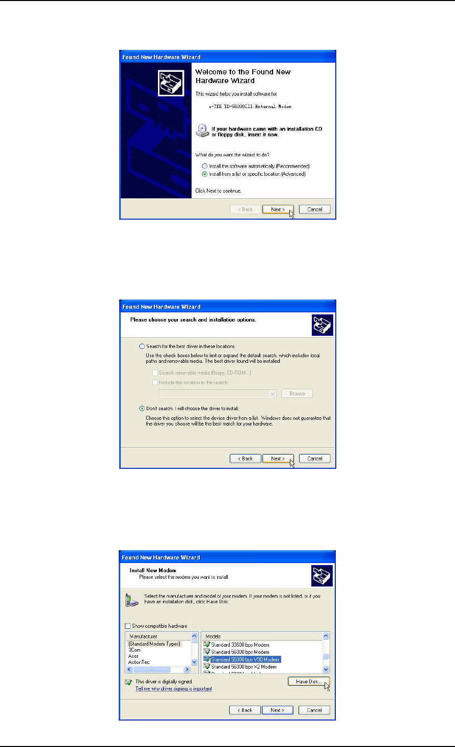 2. 12 Installation of Modem Driver in WindowsXP