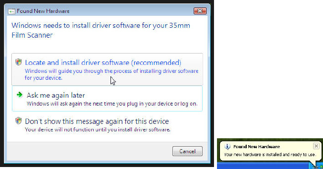 5. After completing software installation, please connect FilmScan35 I to PC. The