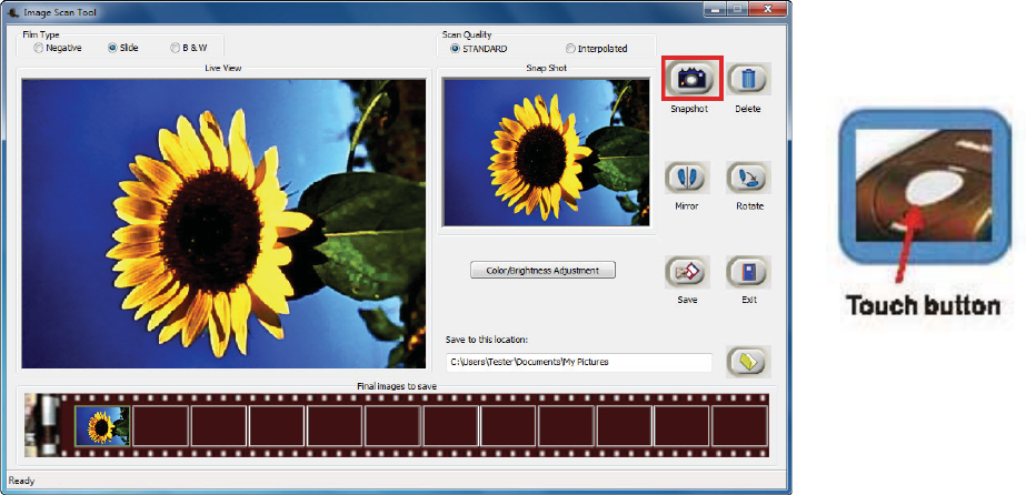 User can either click on “Snapshot” icon or press the hard key “Copy” touch button to