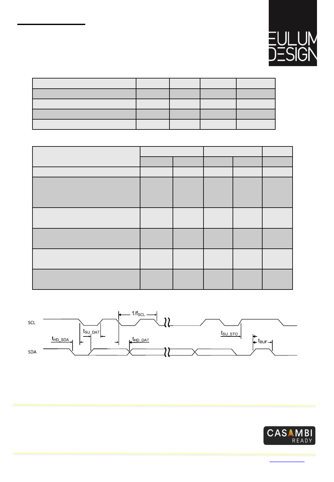 with the Casambi Lighting control app. Two I2C lines (SCL,SDA) interface to the host
