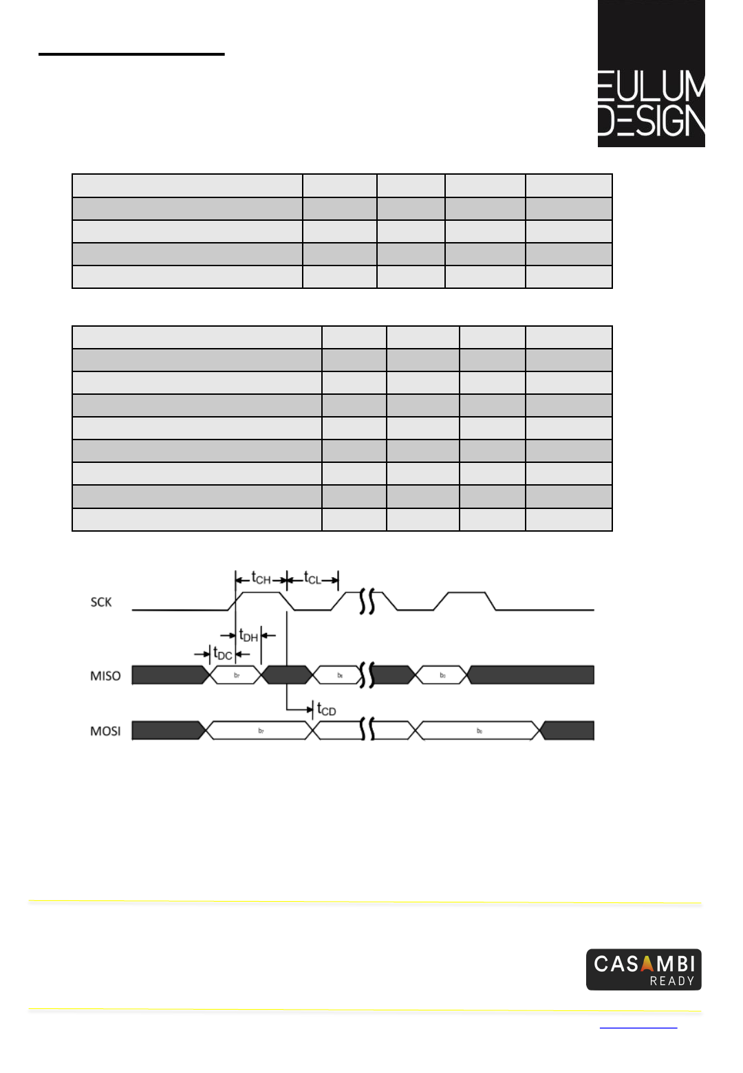 RFM-CSB-2 supports a 3-wire (SCK, MISO, MOSI) bidirectional SPI bus with fast