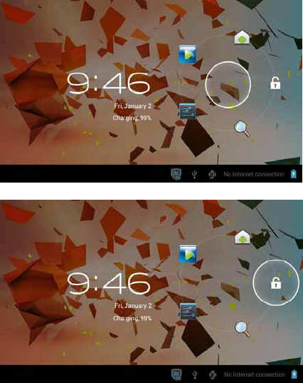 5.4 Unlock screen: slide the lock icon rightward onto the unlock icon to unlock