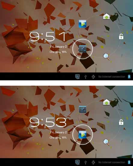 the screen and go to main desktop; Slide the lock icon onto the other icon