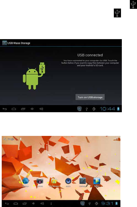 6.1 Using the USB cable provided to connect the tablet with PC, an icon