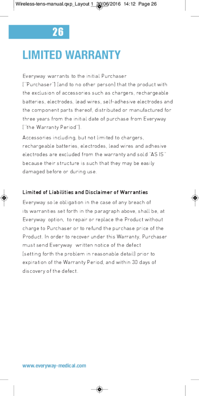 EVERYWAY MEDICAL INSTRUMENTS CO., LTD. Wireless TENS & EMS Remote Controller out
