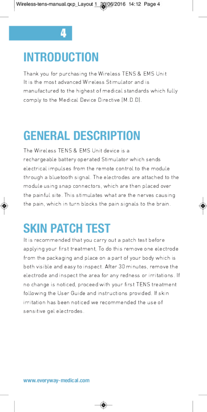 EVERYWAY MEDICAL INSTRUMENTS EM-5210 Wireless TENS & EMS Remote Controller User Manual out