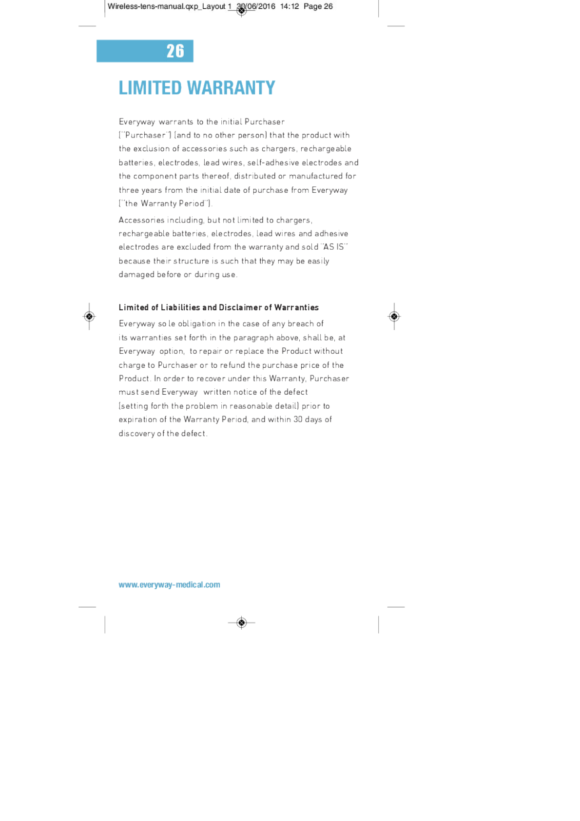 EVERYWAY MEDICAL INSTRUMENTS CO., LTD. Wireless TENS & EMS Remote Controller out