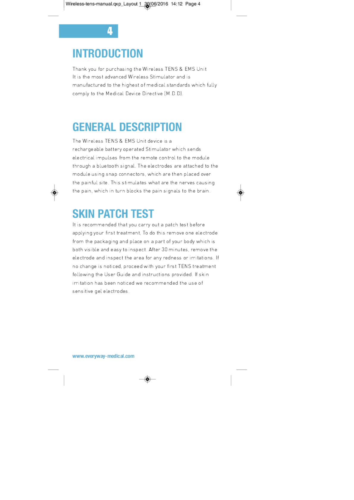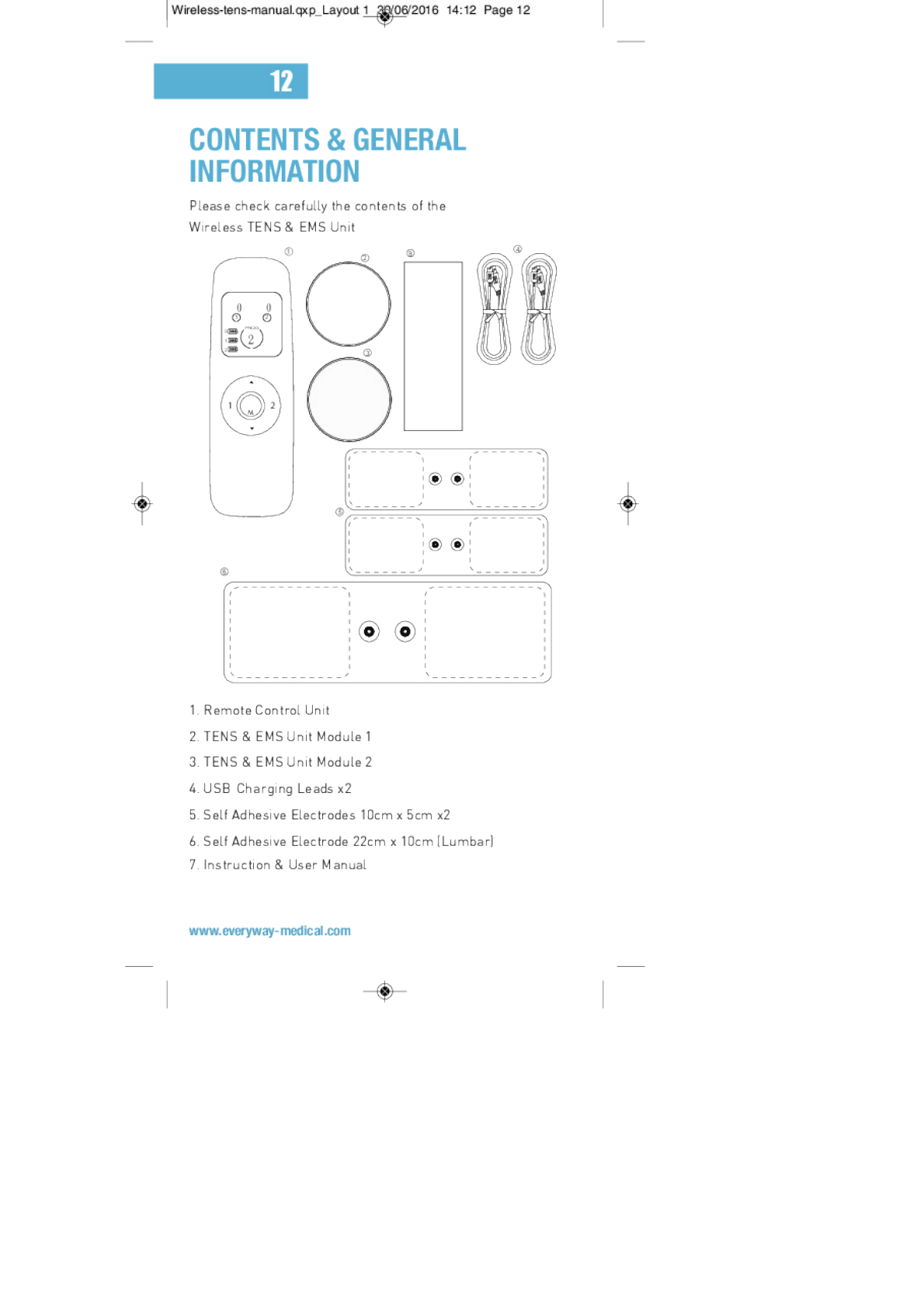 EVERYWAY MEDICAL INSTRUMENTS EM-5210 Wireless TENS & EMS Remote Controller User Manual out