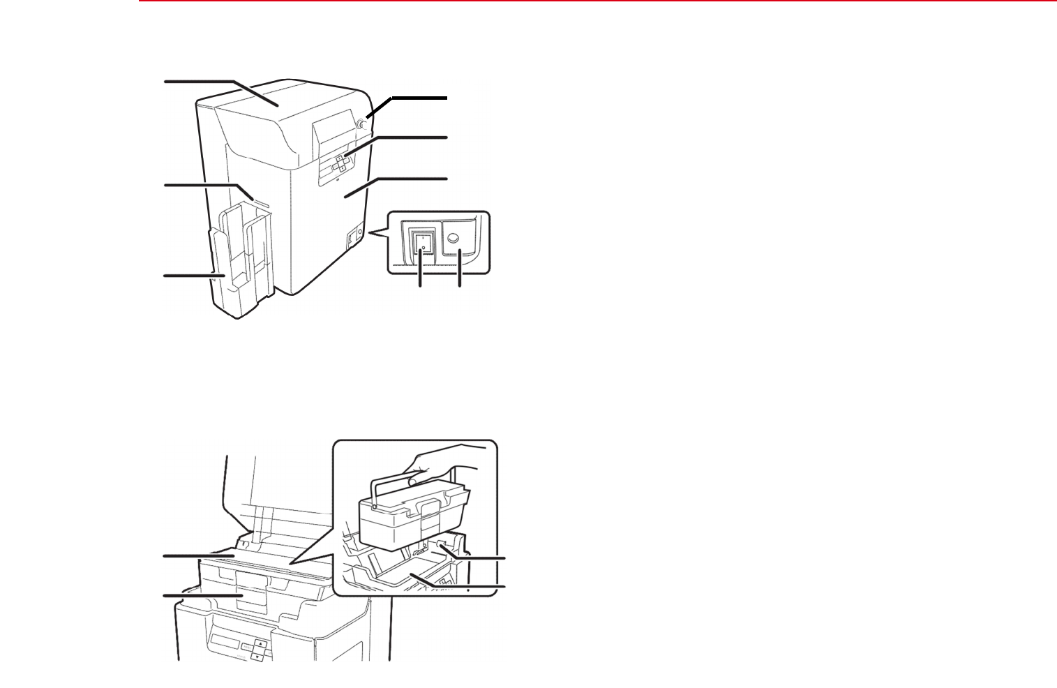 Place the printer away from walls to maintain air flow. Also, maintain at least 30cm (12") of open space above the printer and at least