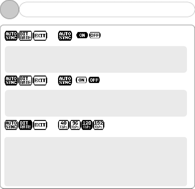 Compatible File Bit Rate 8 Kbps ~ 320 Kbps (WMA/ASF: 32 ~ 192 Kbps)