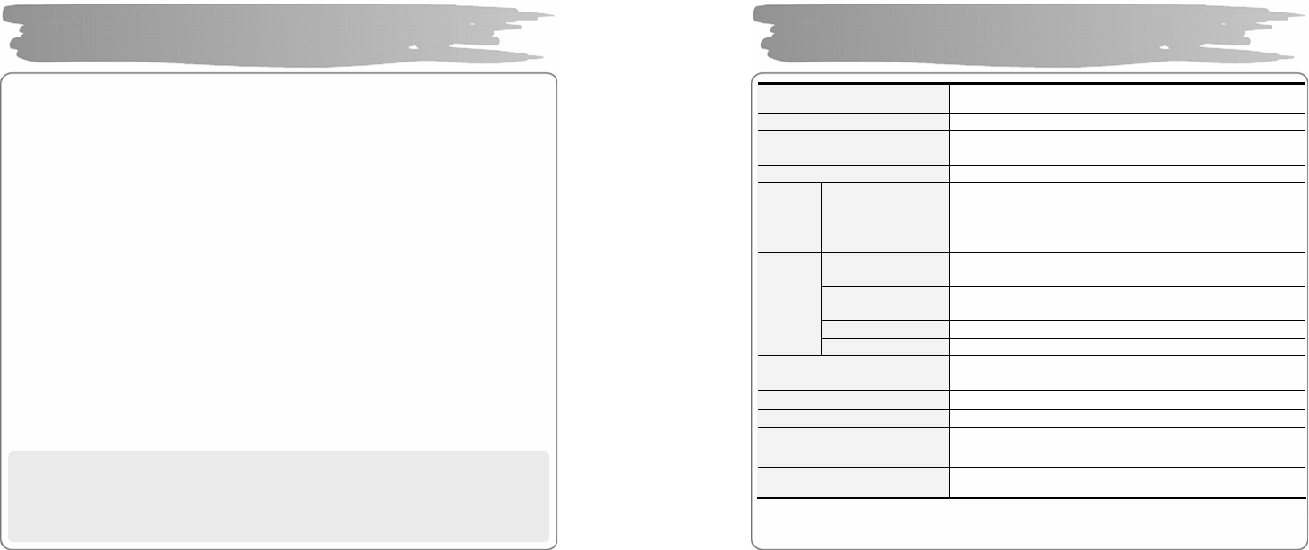 Compatible File Format 8 Kbps ~ 320 Kbps (WMA/ASF: 32 ~ 192 Kbps)
