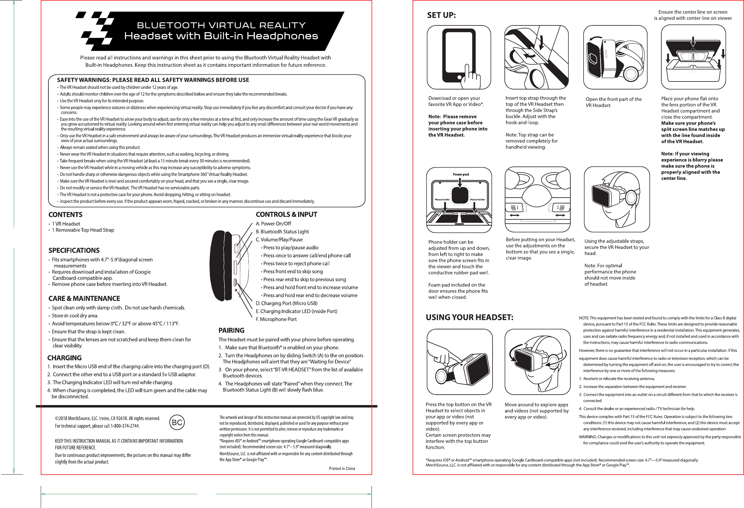 Eapply Technology YBLVRIA Virtual Reality Smartphone Viewer with Headphones Bluetooth User Manual 2018 06 20 BTVirtualRealitySmartphoneViewer IM