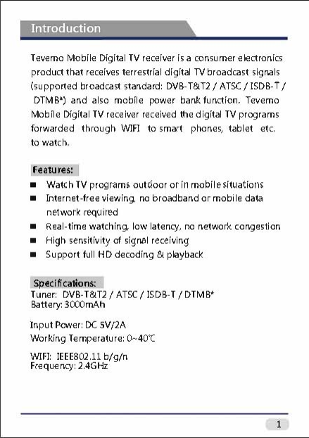 Earda Technologies EMA-3000A Mobile Digital TV Receiver User Manual
