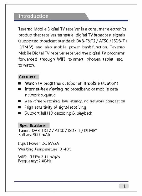 Earda Technologies EMA-3000A Mobile Digital TV Receiver User Manual