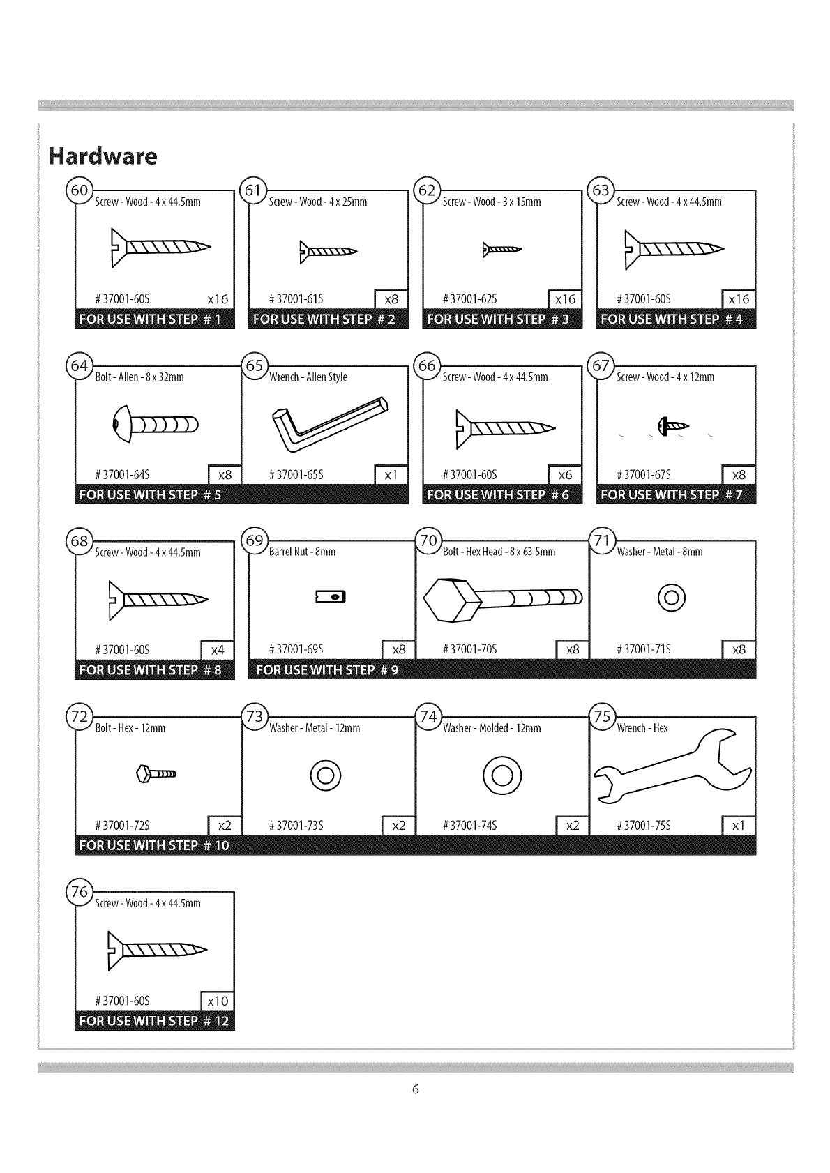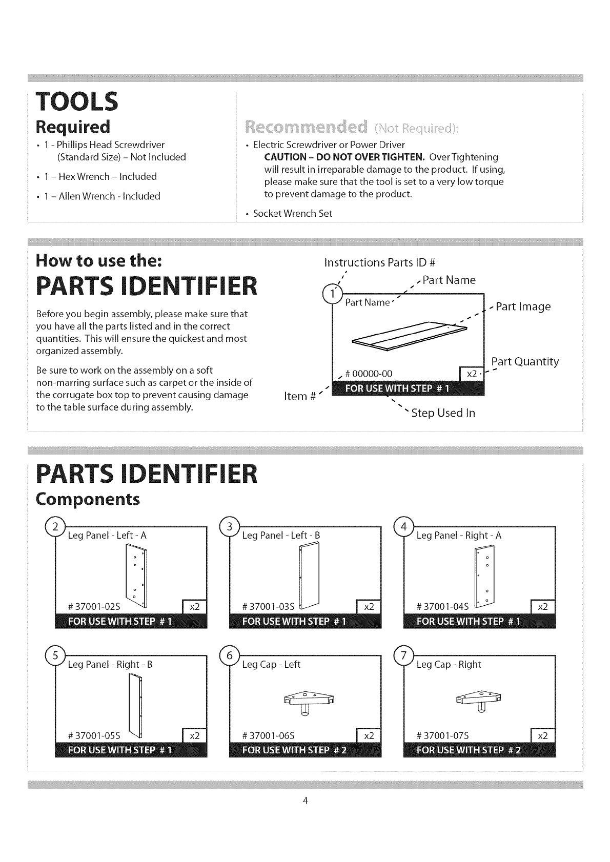 - Please review the parts identifier and make sure that you have all parts before beginning assembly.