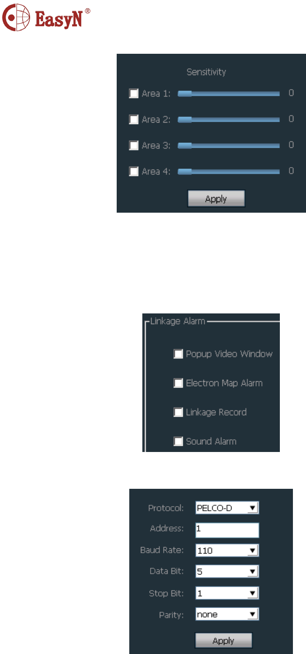 Step 3: configure sensitivity of alarm area detection. Sensitivity range: 0-75,
