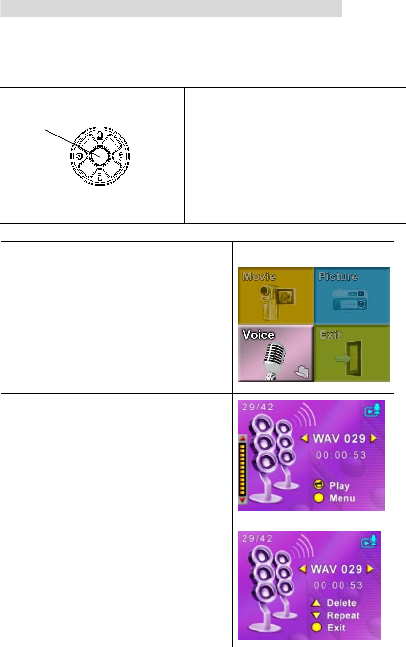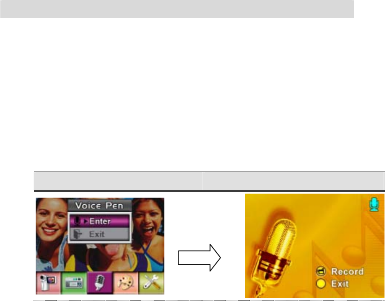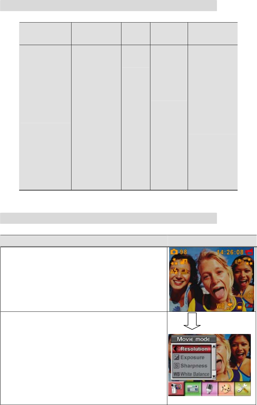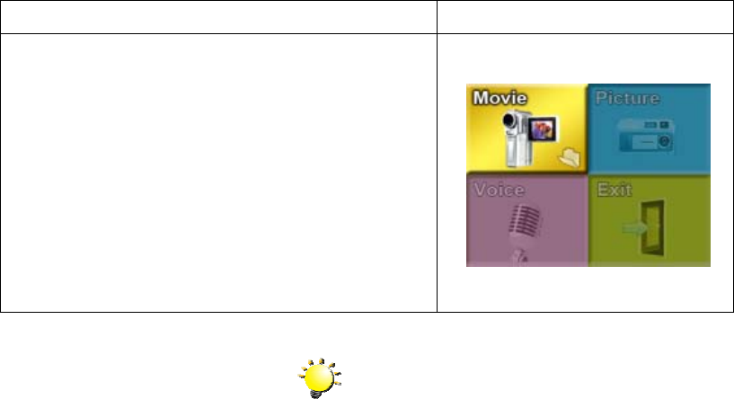 Operation Modes Movie Record、Picture Record、Voice