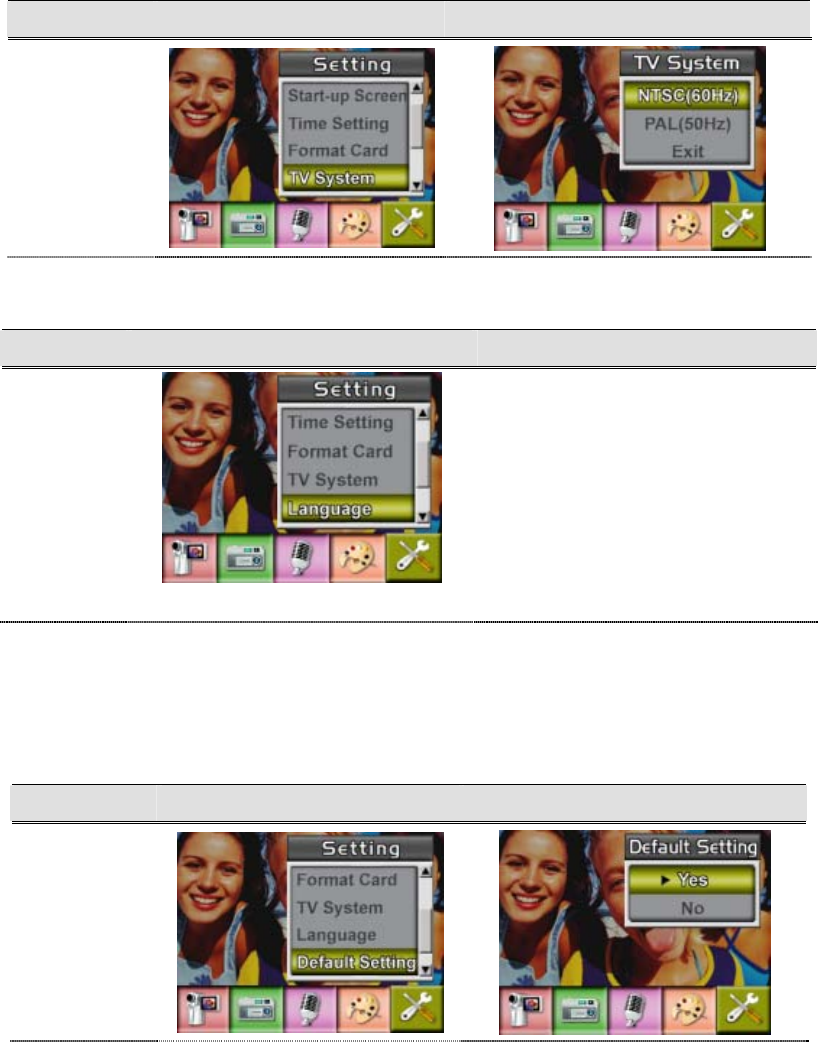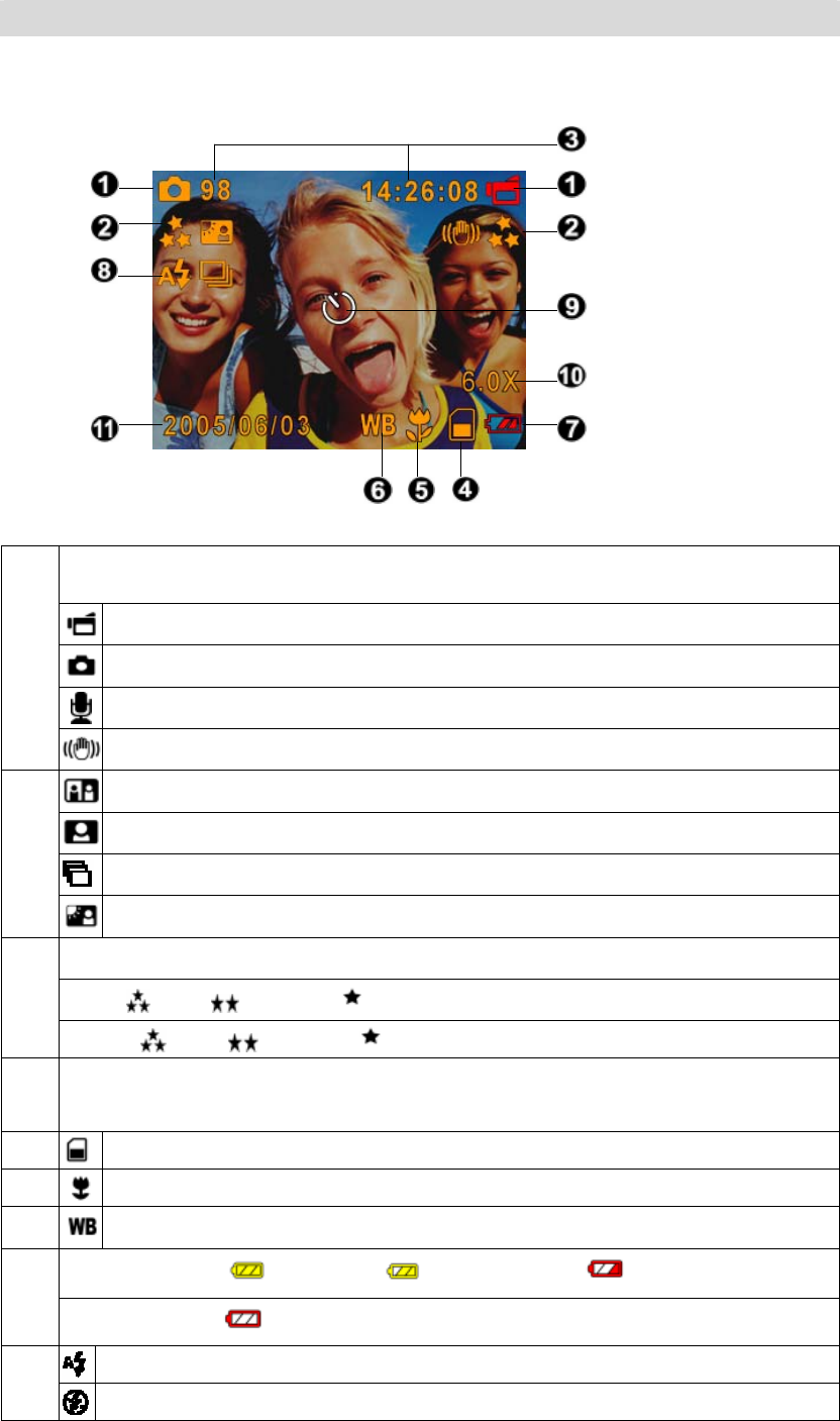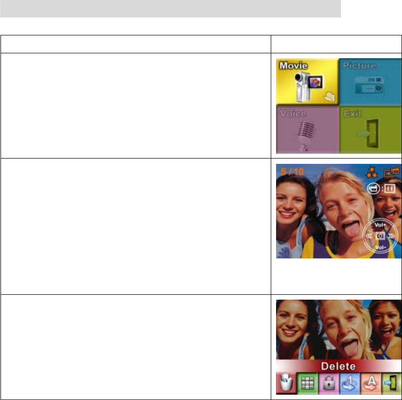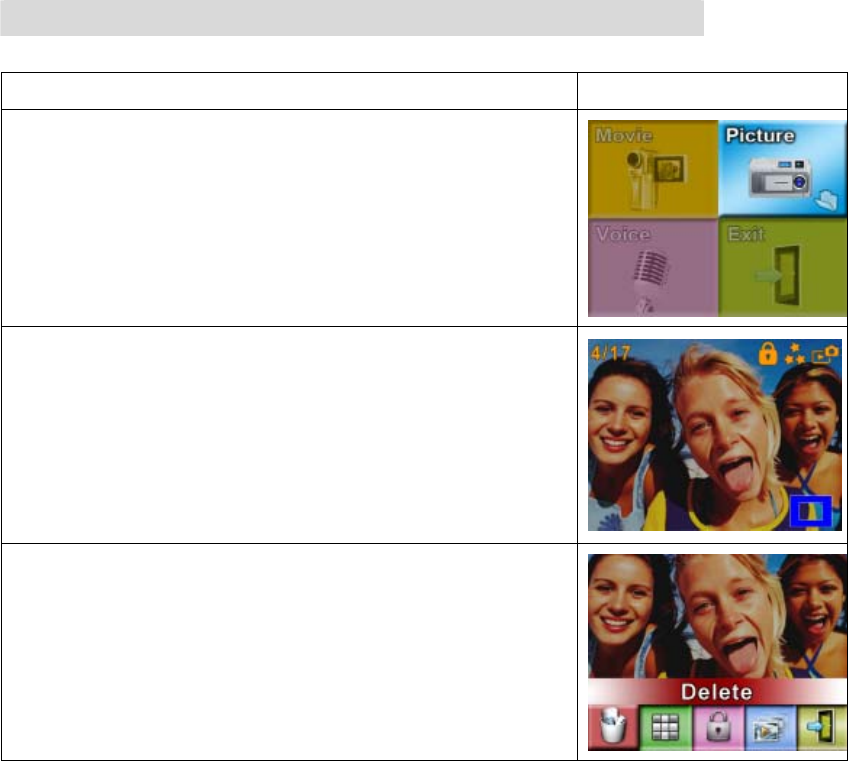 Operation Modes Movie Record、Picture Record、Voice