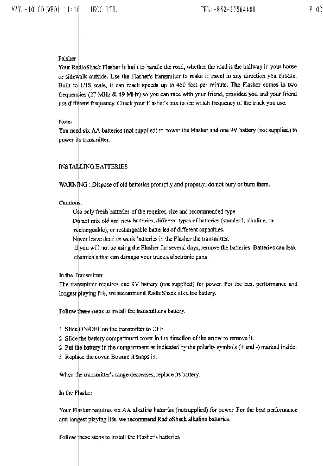 Echo Toys 604250 Toy remote Control User Manual page