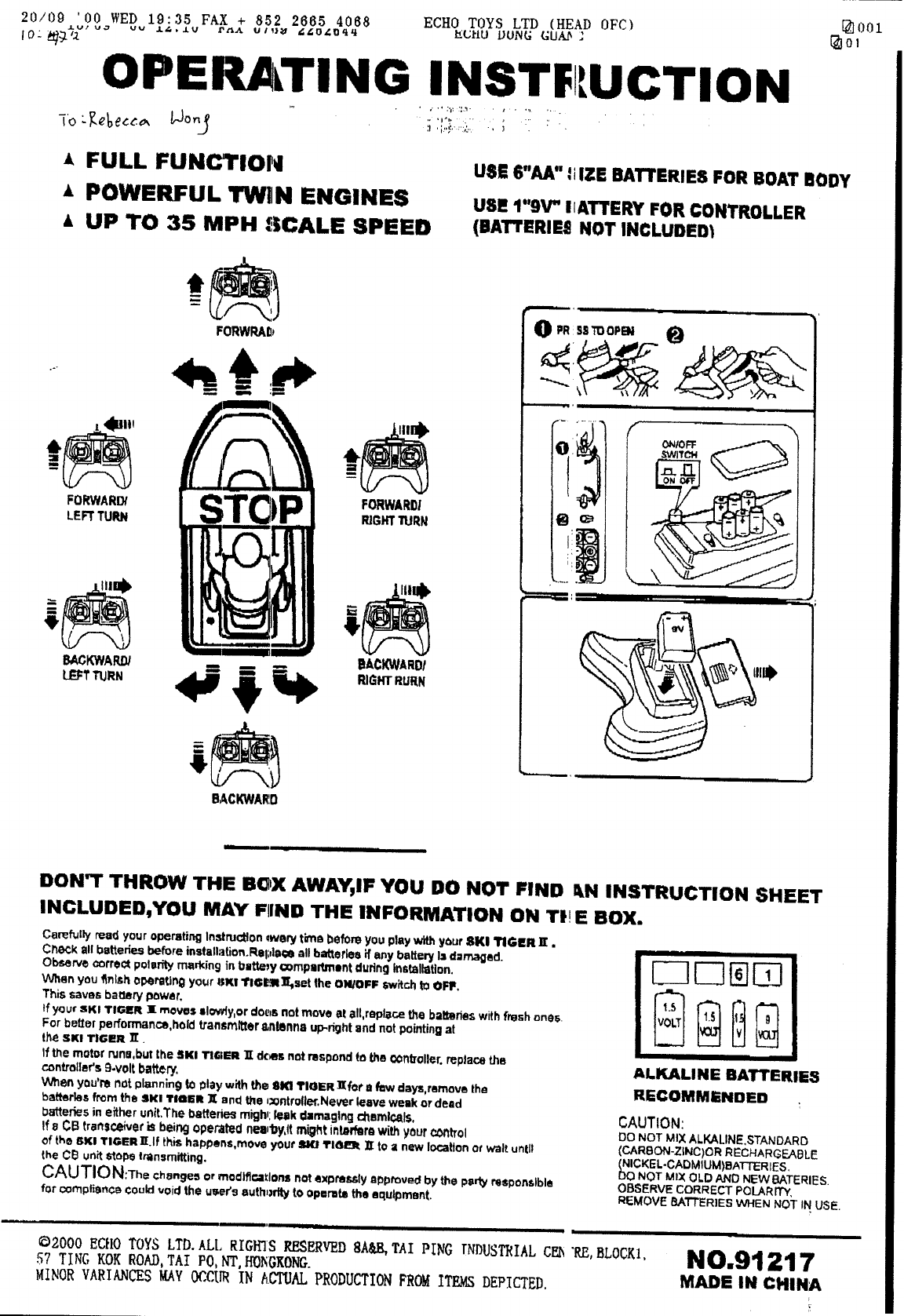 Echo Toys 91217T49 Ski Tigger II User Manual users manual