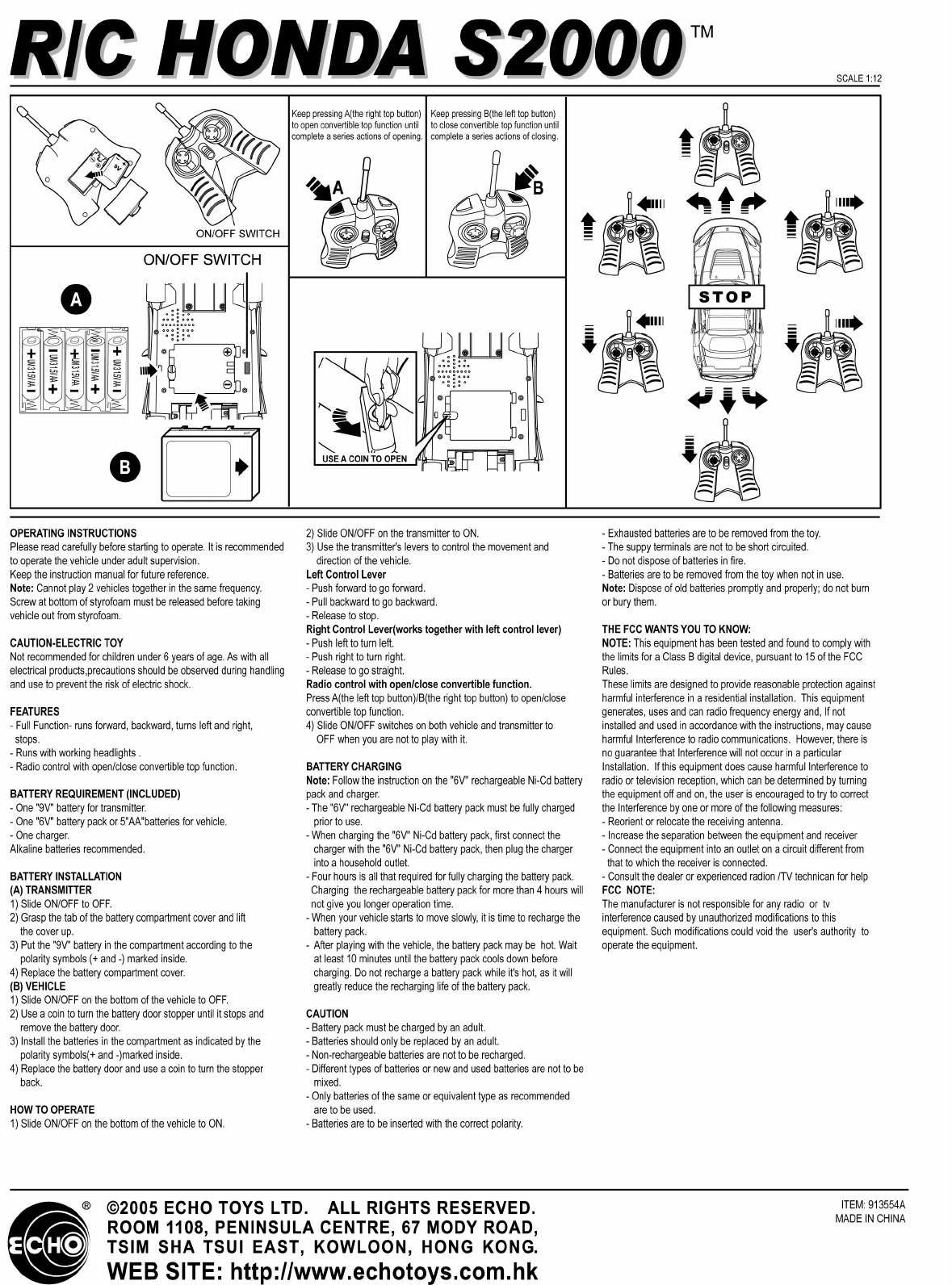 Echo Toys Ltd R/C HONDA S2000 USERS MANUAL