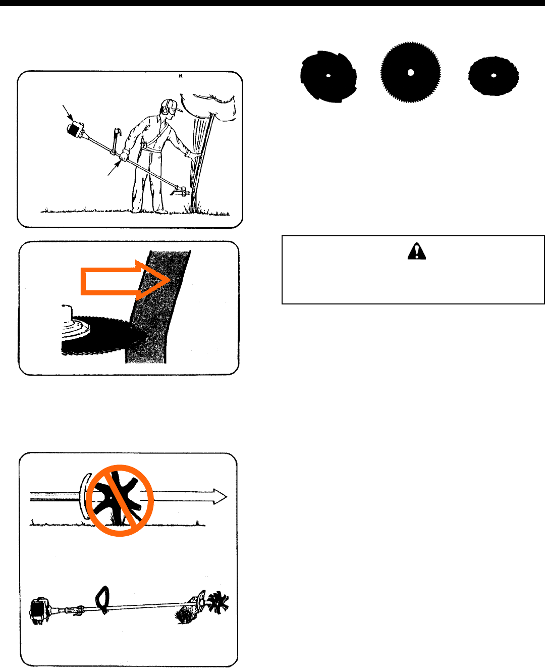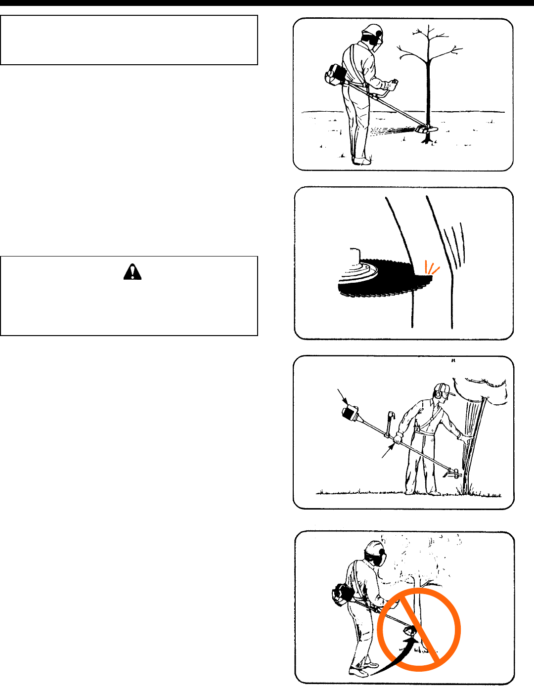 If a sapling or shrub binds the blade, do not use the blade as a lever