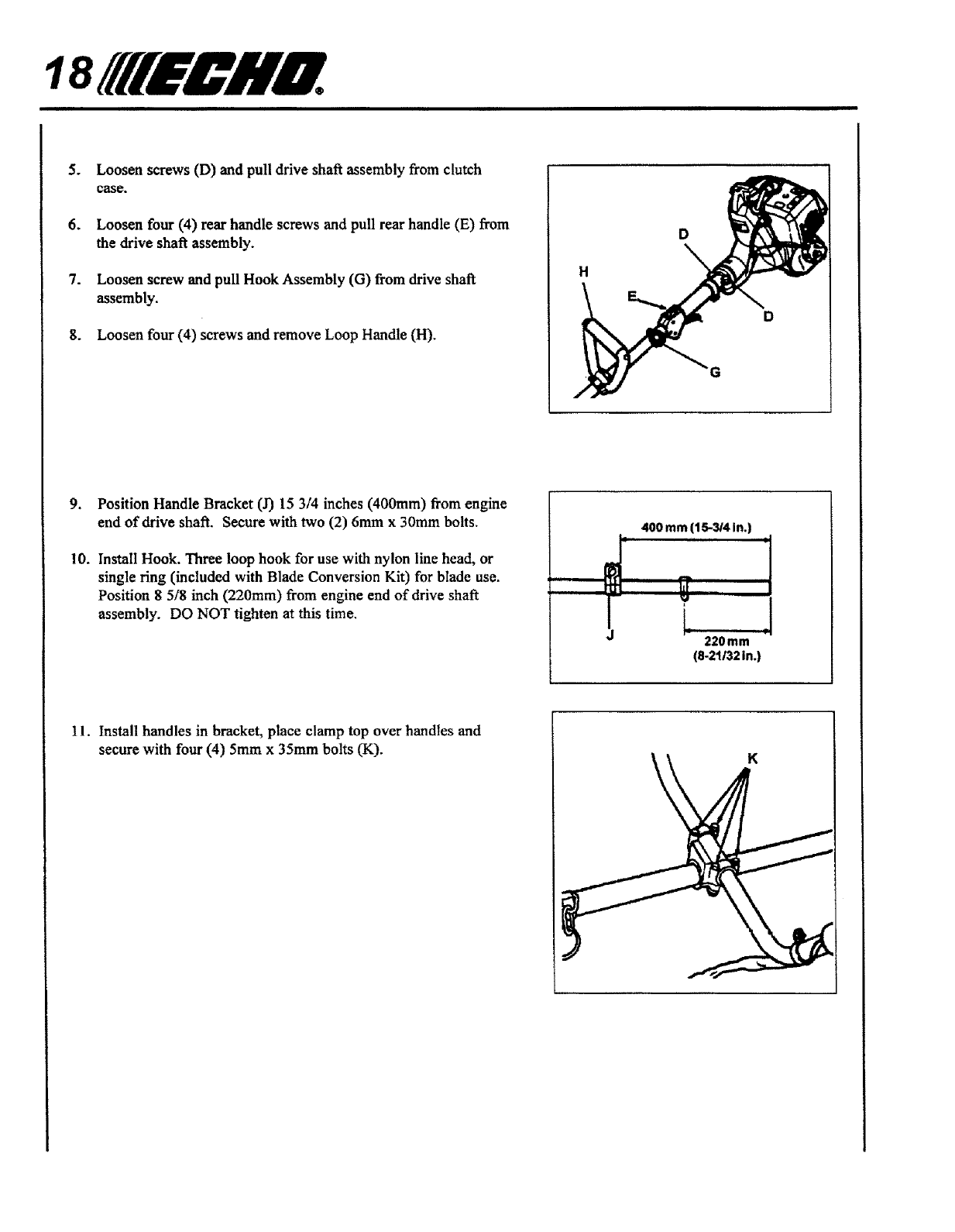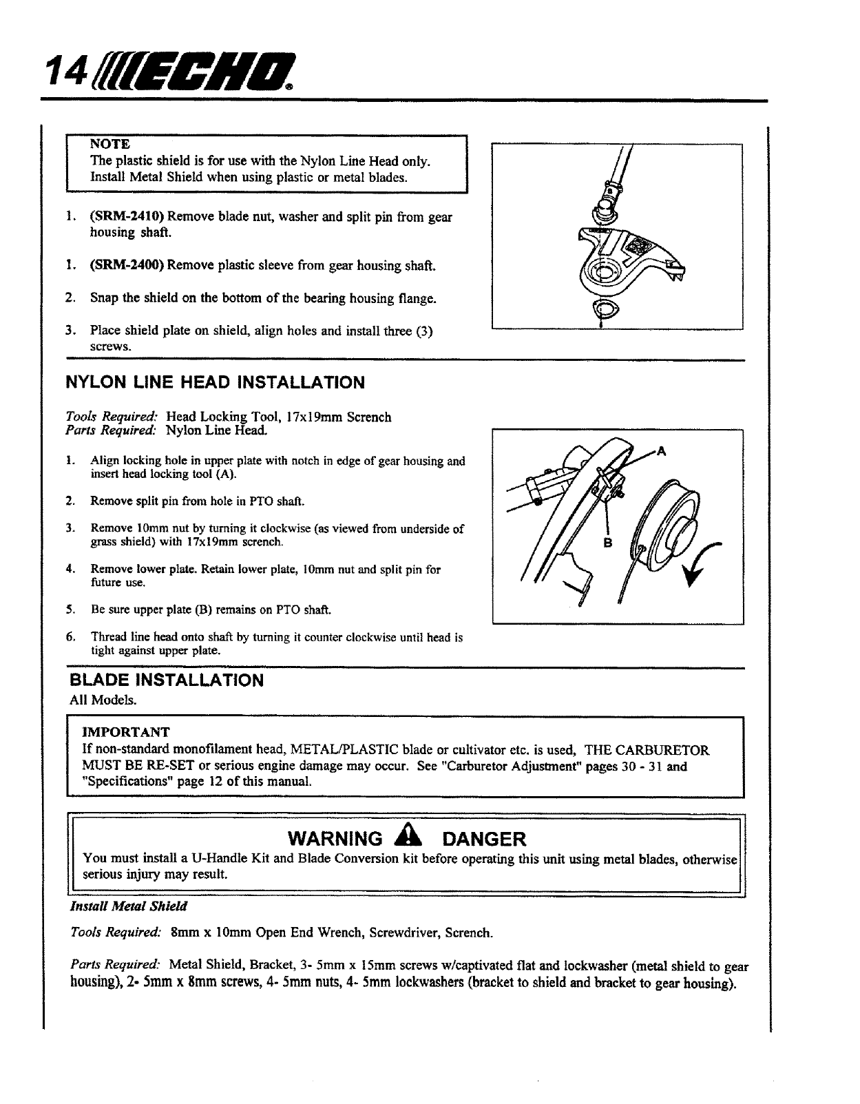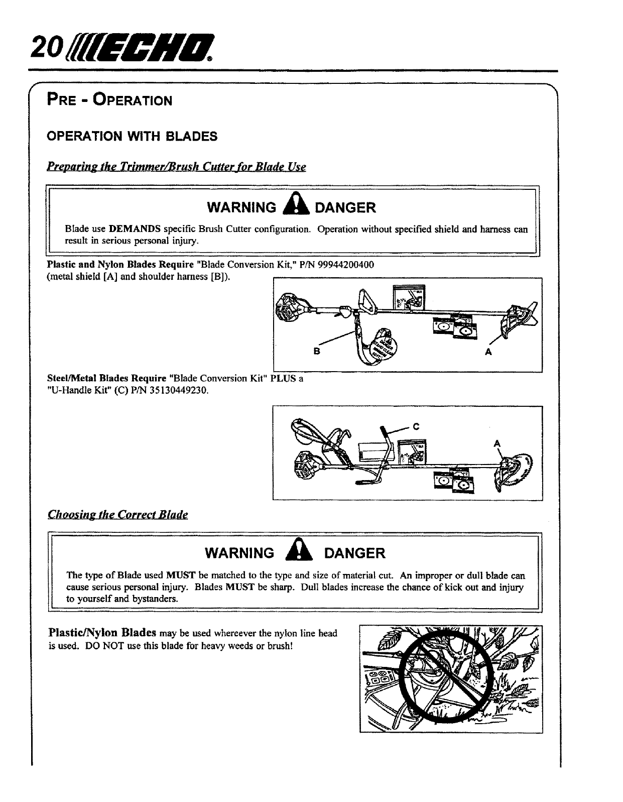 are listed the various part numbers required for that task. See your ECHO dealer for these parts.