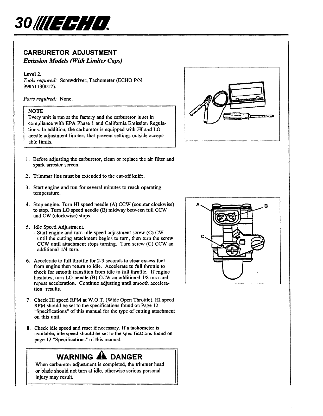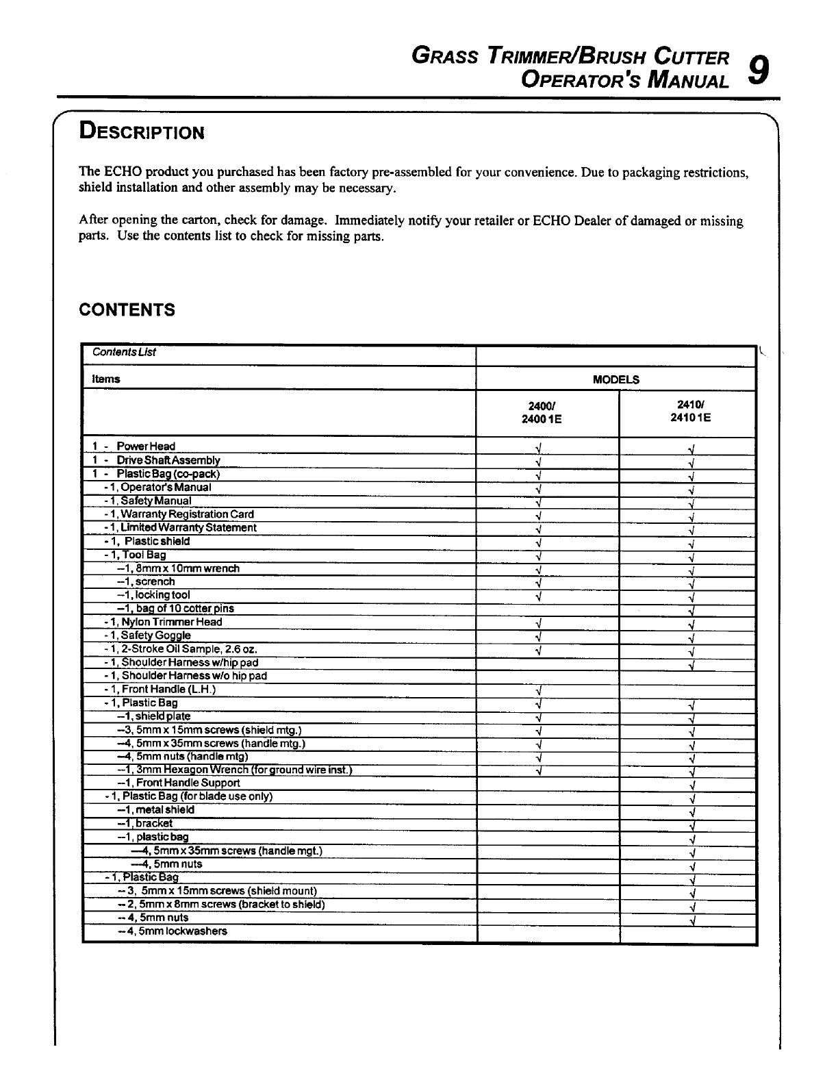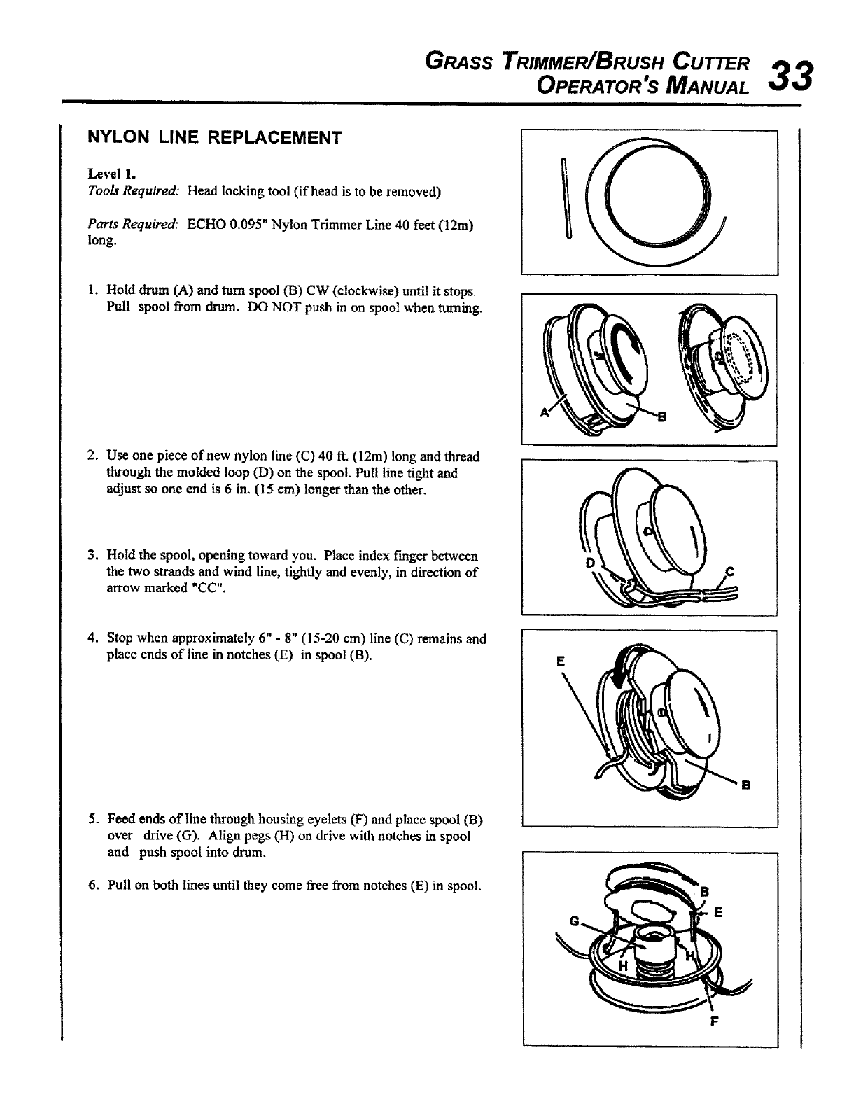 are listed the various part numbers required for that task. See your ECHO dealer for these parts.