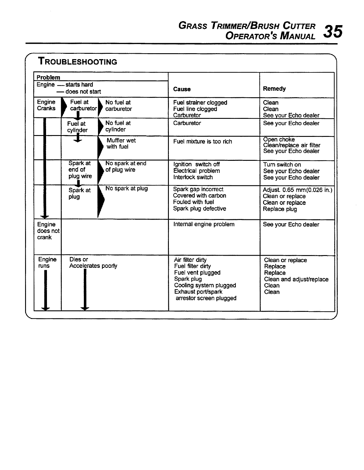 Dealer do it, each maintenance task has been graded. If a task is not listed, see your ECHO Dealer for repairs.