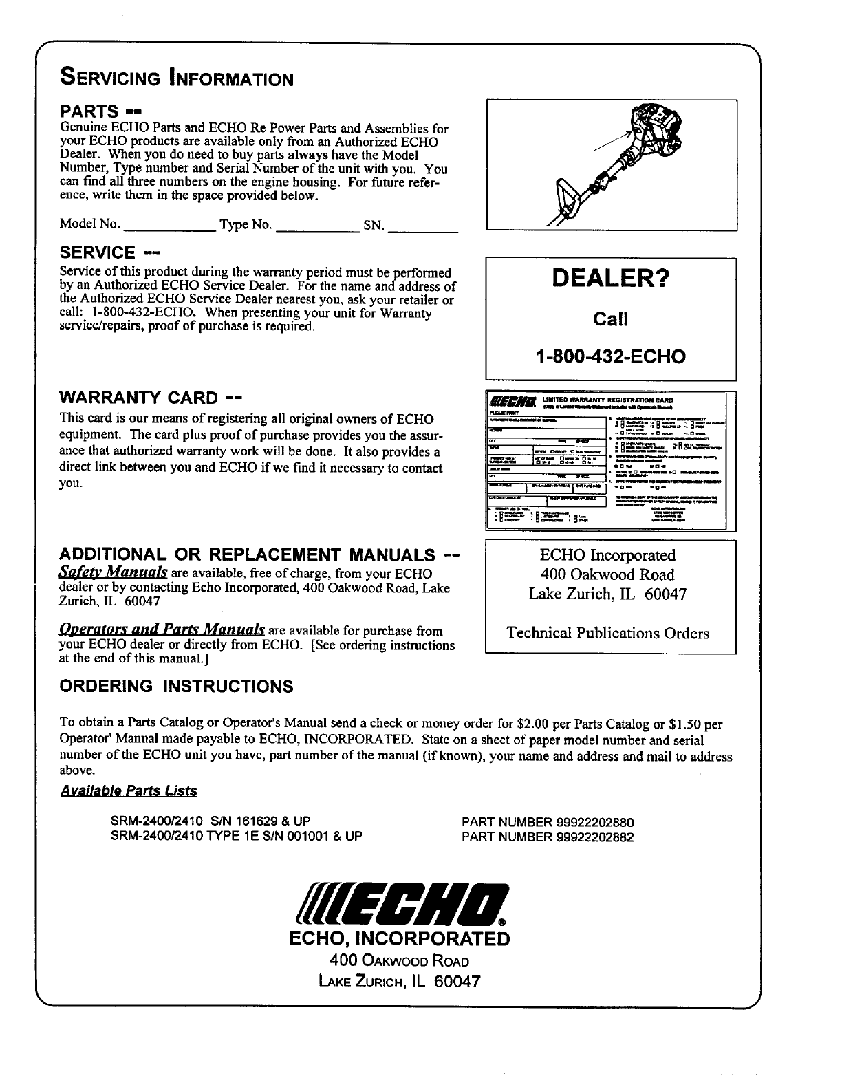 an ECHO Service Dealer for maintenance. To help you decide whether you want to DO-IT-YOURSELF or have the ECHO