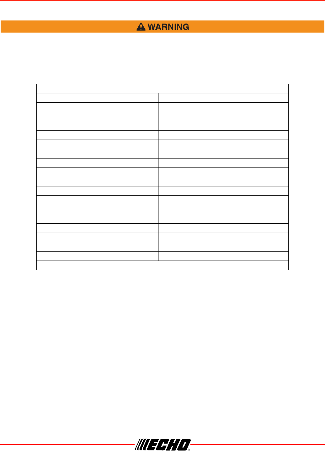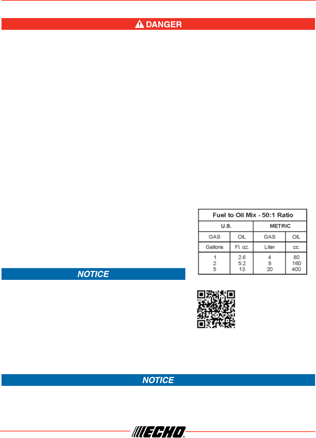 is also approved. The prescribed mixing ratio of gasoline to oil is listed on the ECHO oil label and covered in your operator’s manual.