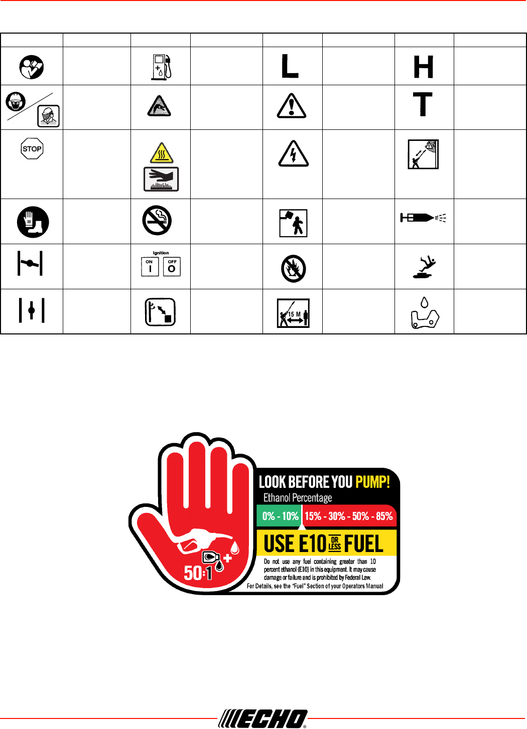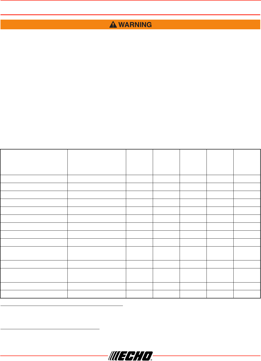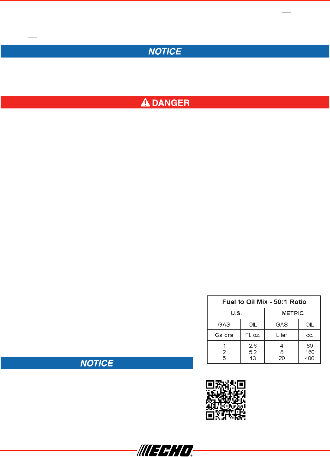 is also approved. The prescribed mixing ratio of gasoline to oil is listed on the ECHO oil label and covered in your operator’s manual.