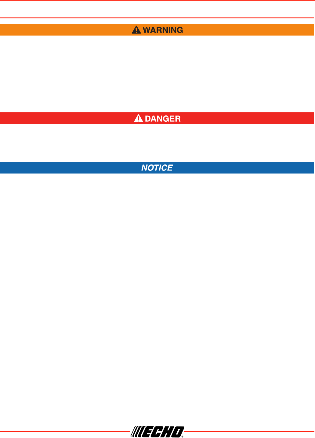 failure occur, the product should not be used, but delivered as is to an authorized ECHO servicing dealer.