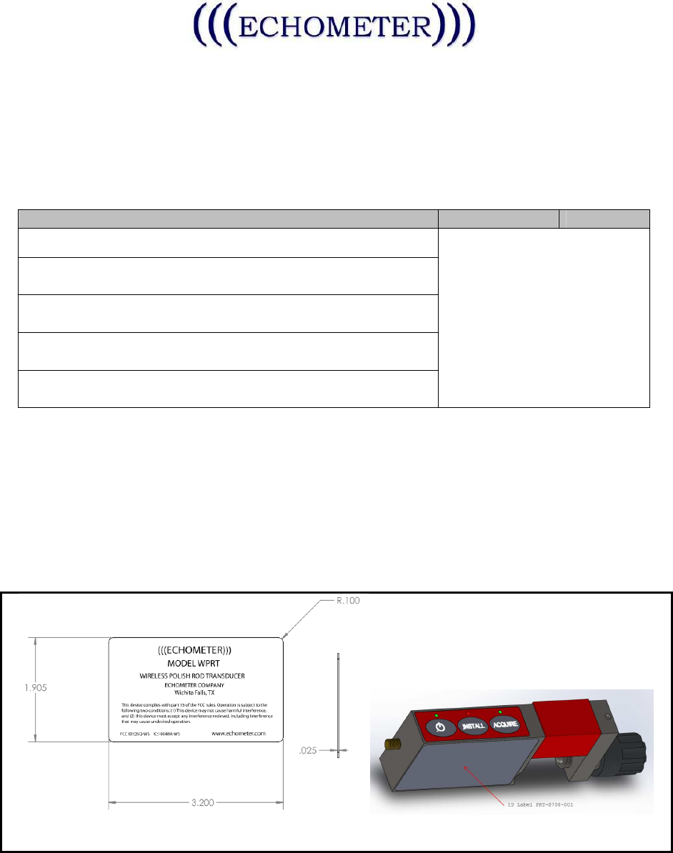 instructions. Table 2 includes the FCC Label design and intended installation location.