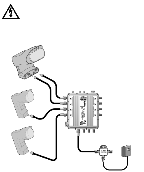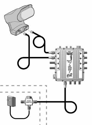 - 4. Connect the cables from the receiver’s back panel Satellite In port(s) to the To Receiver Satellite In port of the power inserter installed in the previous step, or to switch ports Ç through Ñ labeled To Receiver Satellite In.