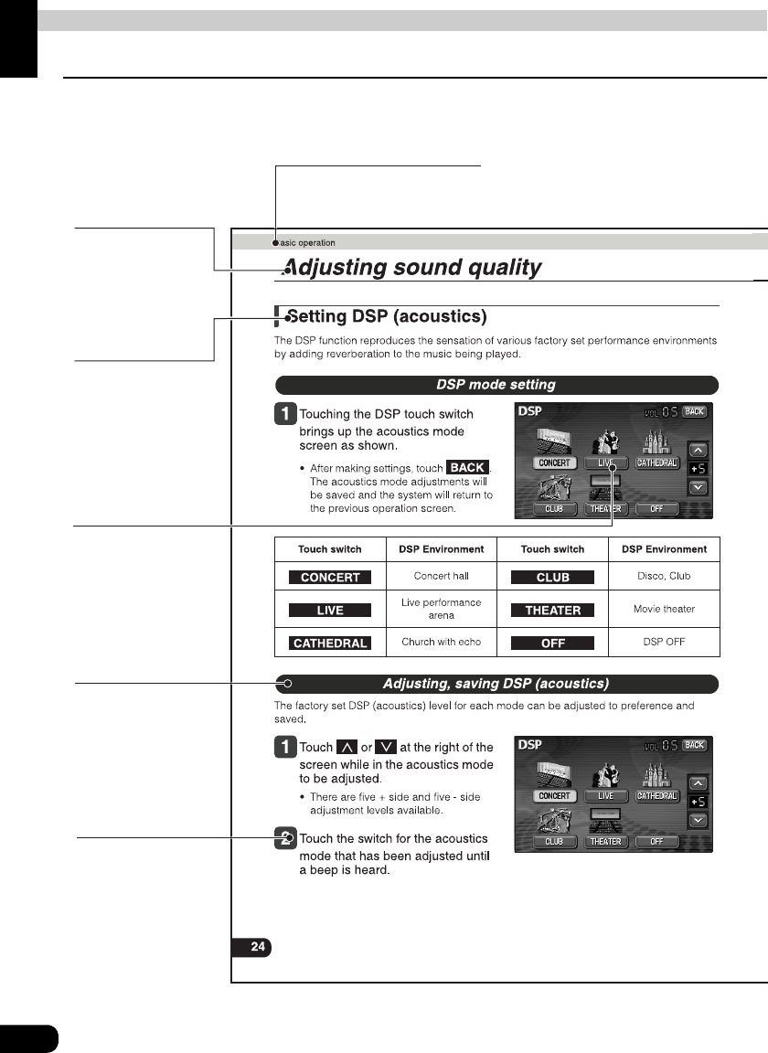 - DSP effects for simulating acoustics of various performance environments (Page 24)