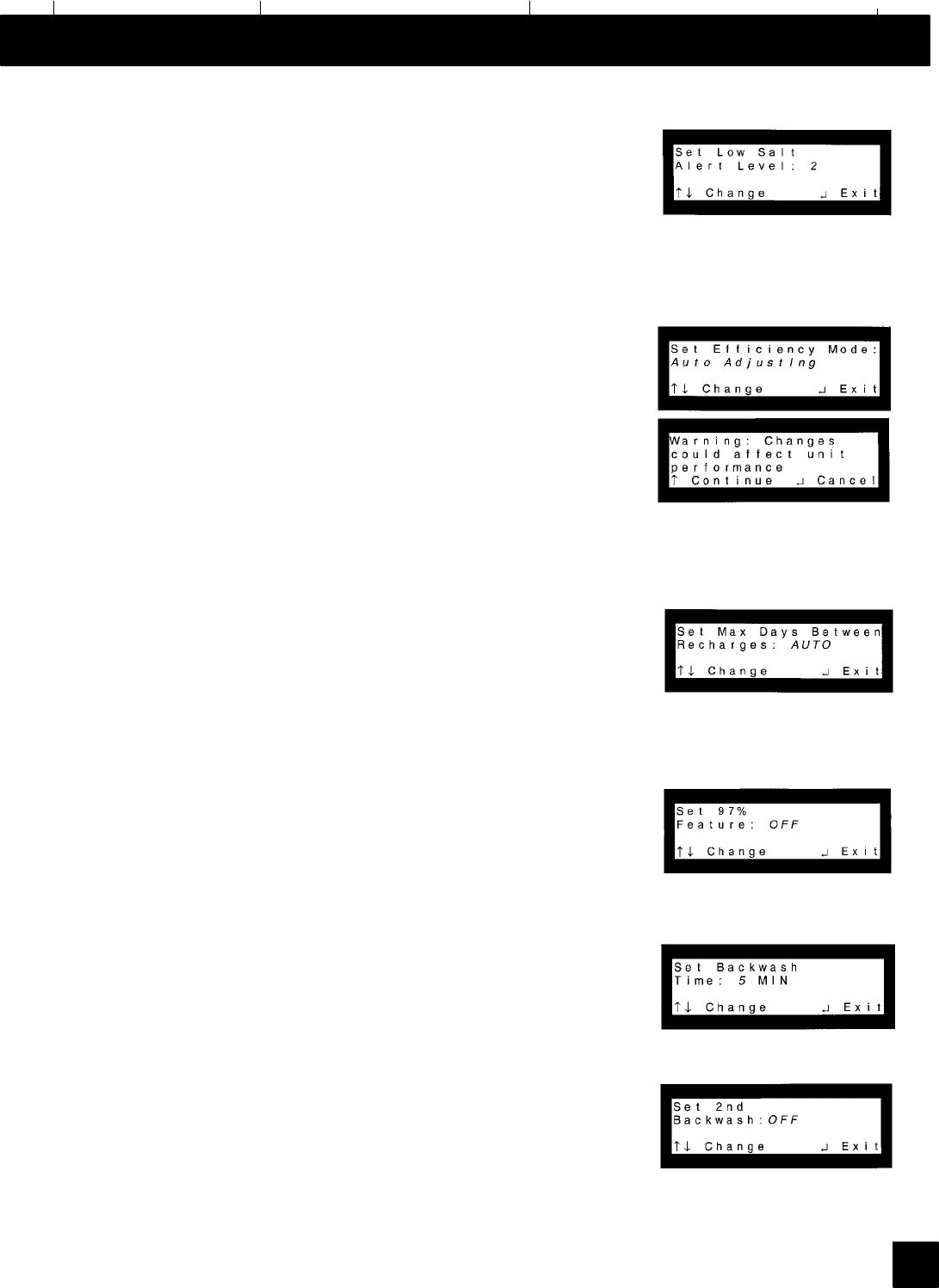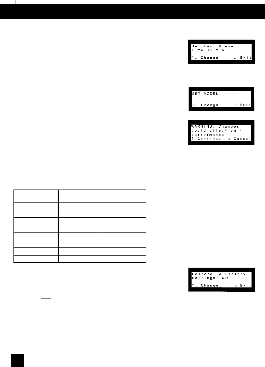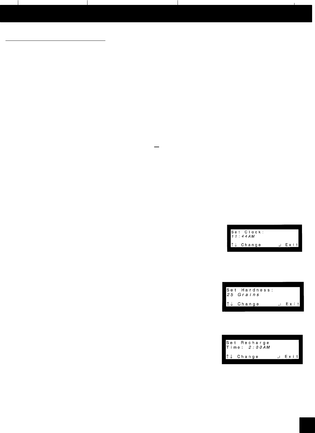 WATER HARDNESS SETTING (see page 15)