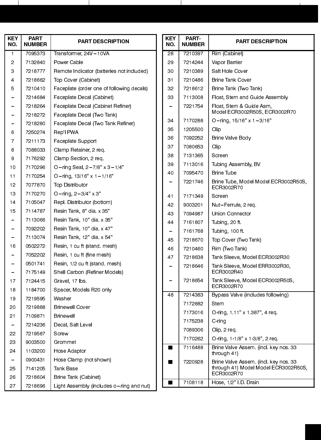 ECR3000R30, ECR3002R30, ERR3000R20 10” DIA. X 35” 39.5” 39.5” 44.8”